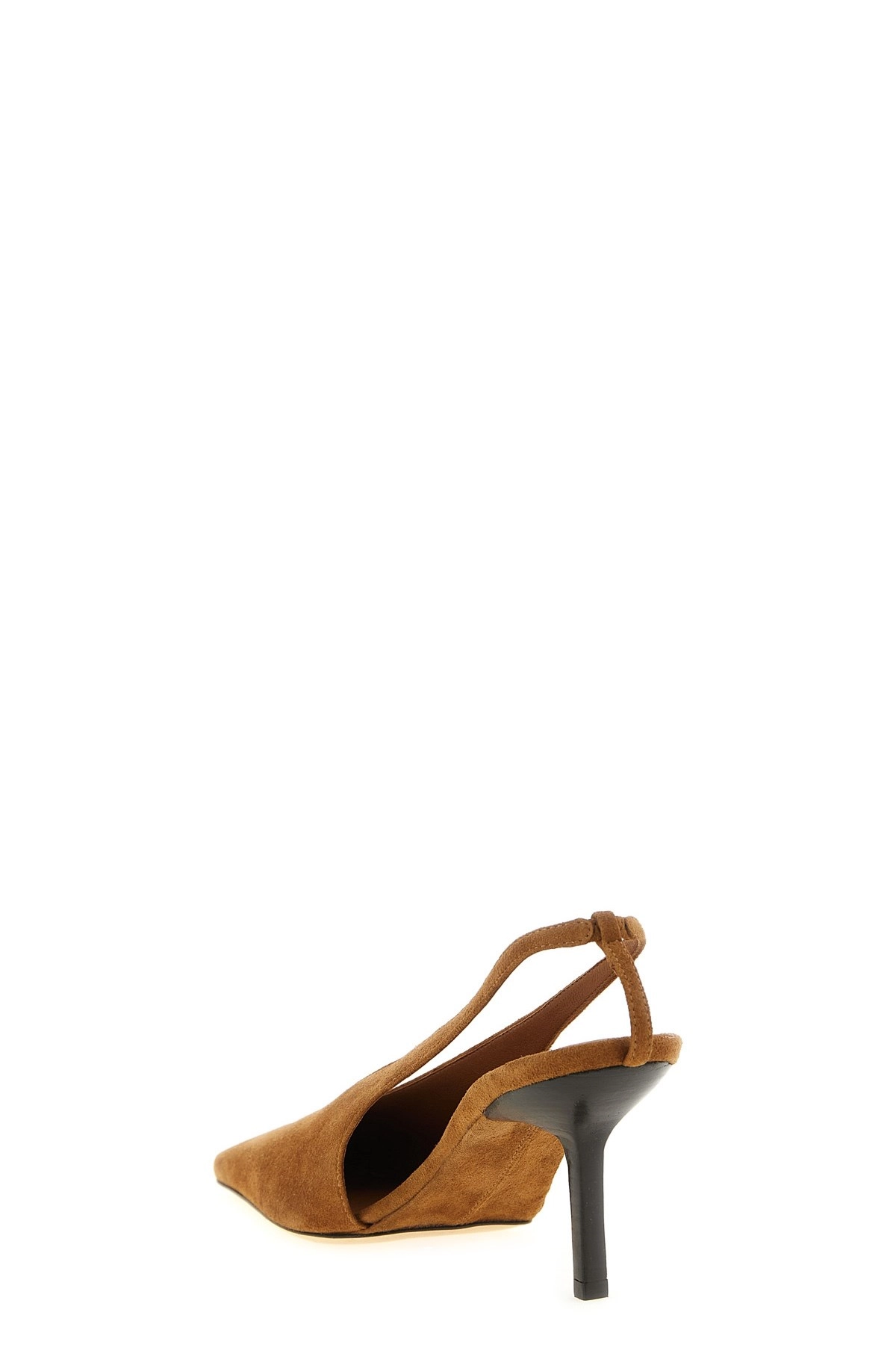 cod. ARMTMSC03SU01034CARAMEL ‘Evelina’ suede slingbacks with square toe, elastic strap, covered heel, sole divided into two parts: the sole of the foot is covered with a sole in natural pumice leather, while the arch of the foot is covered with the same material as the upper with a central hand stitching. Color: Brown Size & Fit: EU WOMAN — Heels: 7.5 cm Composition: 100% leather Made in: Italy