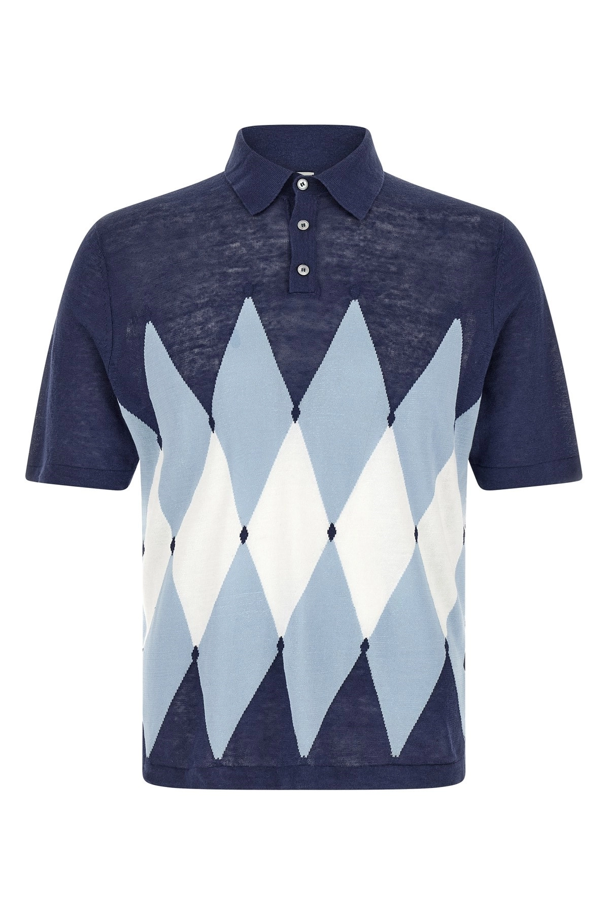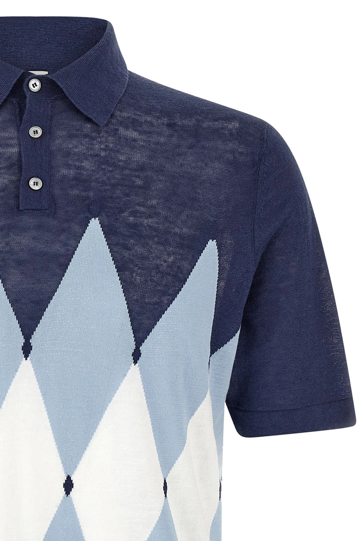 cod. B2W02614L2093592 Polo in misto lino e cotone con motivo Argyle jacquard frontale, colletto e bottoni, manica corta. Colore: Blu Size & Fit: fit true to size Tessuto: 50%linen 50%cotton Made in: Cina