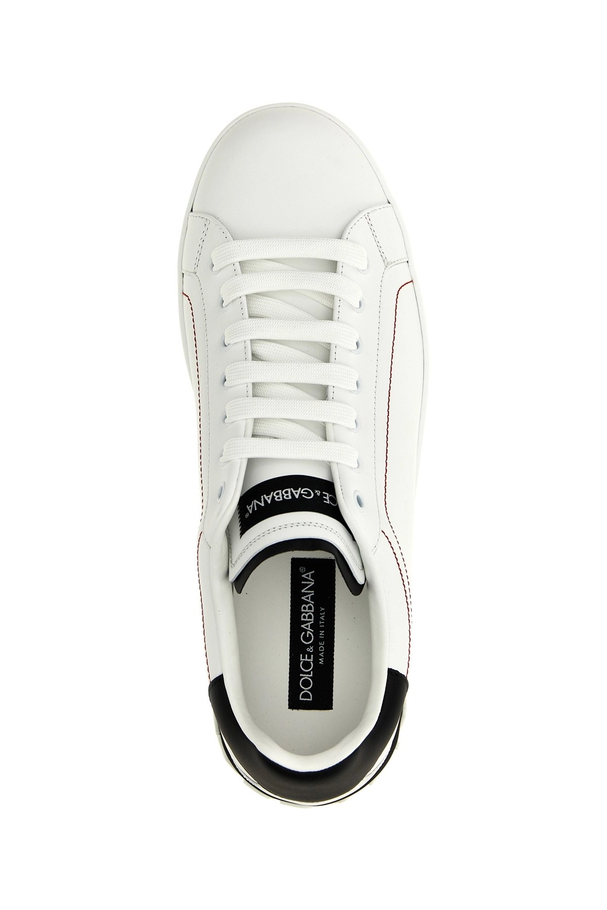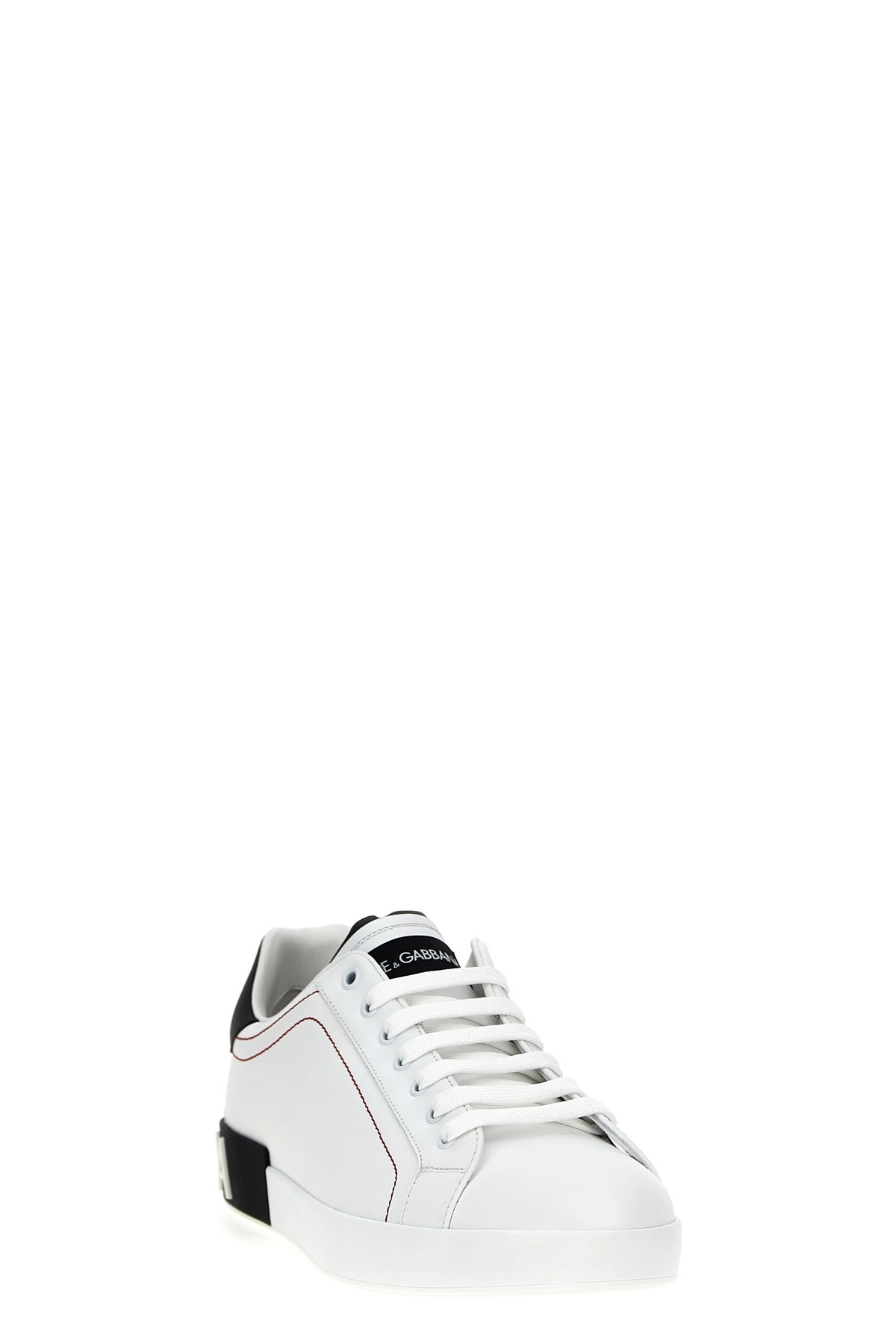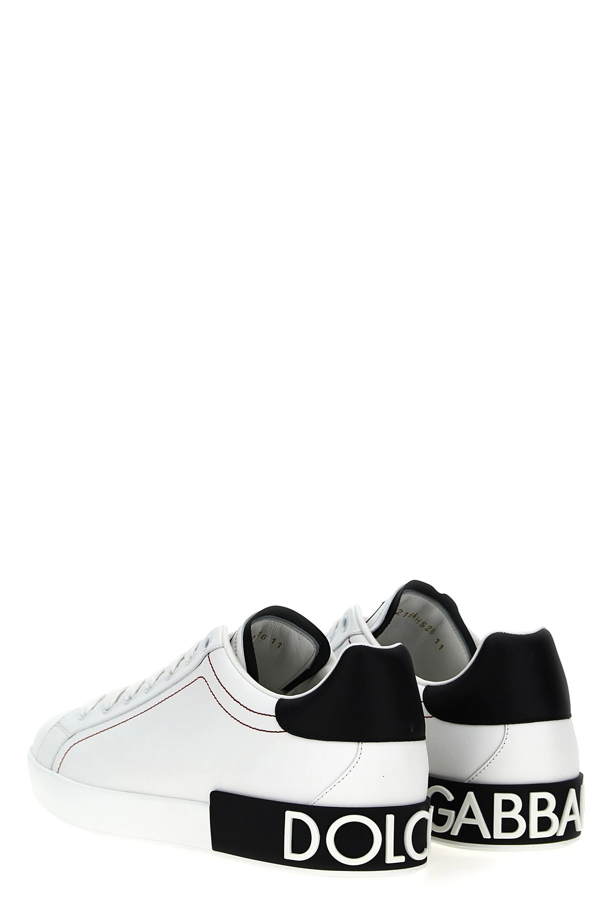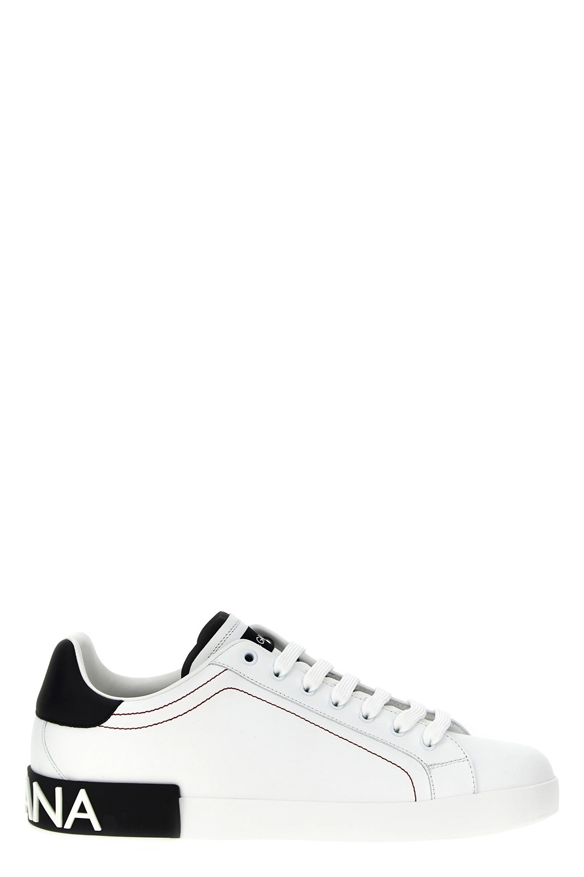 cod. CS2216AH52689697 Portofino leather sneakers with contrasting logo at the back, contrasting heel, and a rubber sole. Color: White/Black Size & Fit: EU MAN Composition: 100% leather Made in: Italy