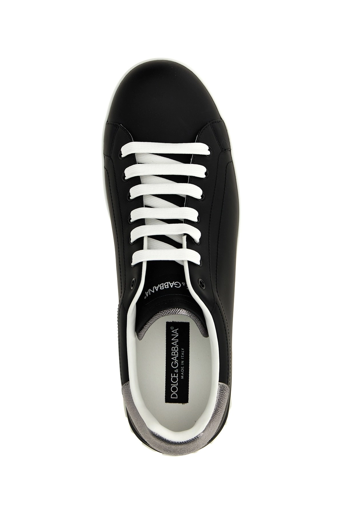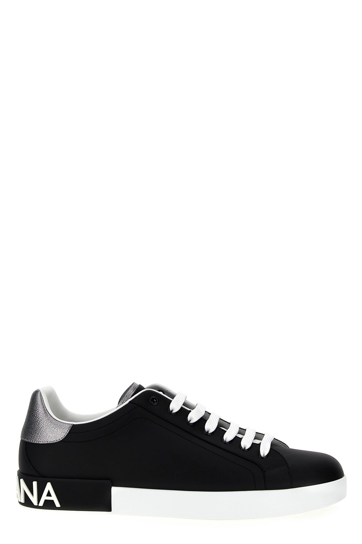 cod. CS2216AH5278B979 Portofino low sneakers in leather with logo insert, laces, and rubber box sole. Color: White/Black Size & Fit: EU MEN Made in: Italy