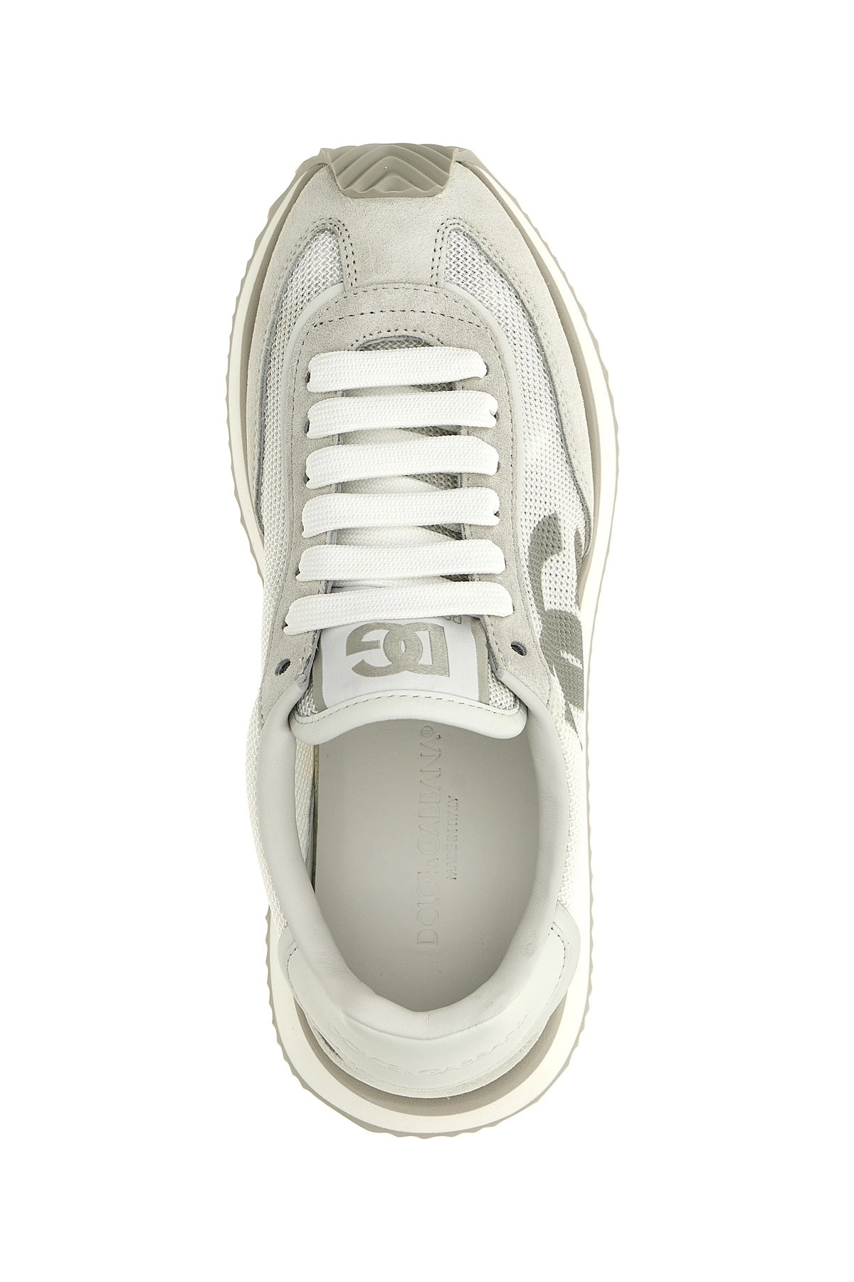 cod. CK2288A53558B930 ‘DG Cushion’ sneakers in suede and mesh fabric, side logo, lace-up closure, rubber sole. Color: White Size & Fit: EU WOMEN Composition: 70% calf leather 30% polyester Made in: Italy
