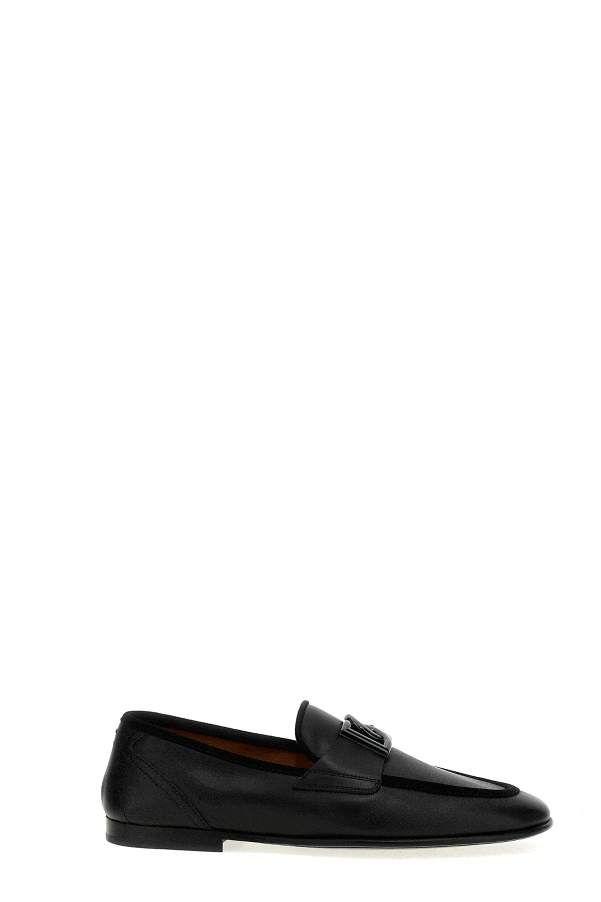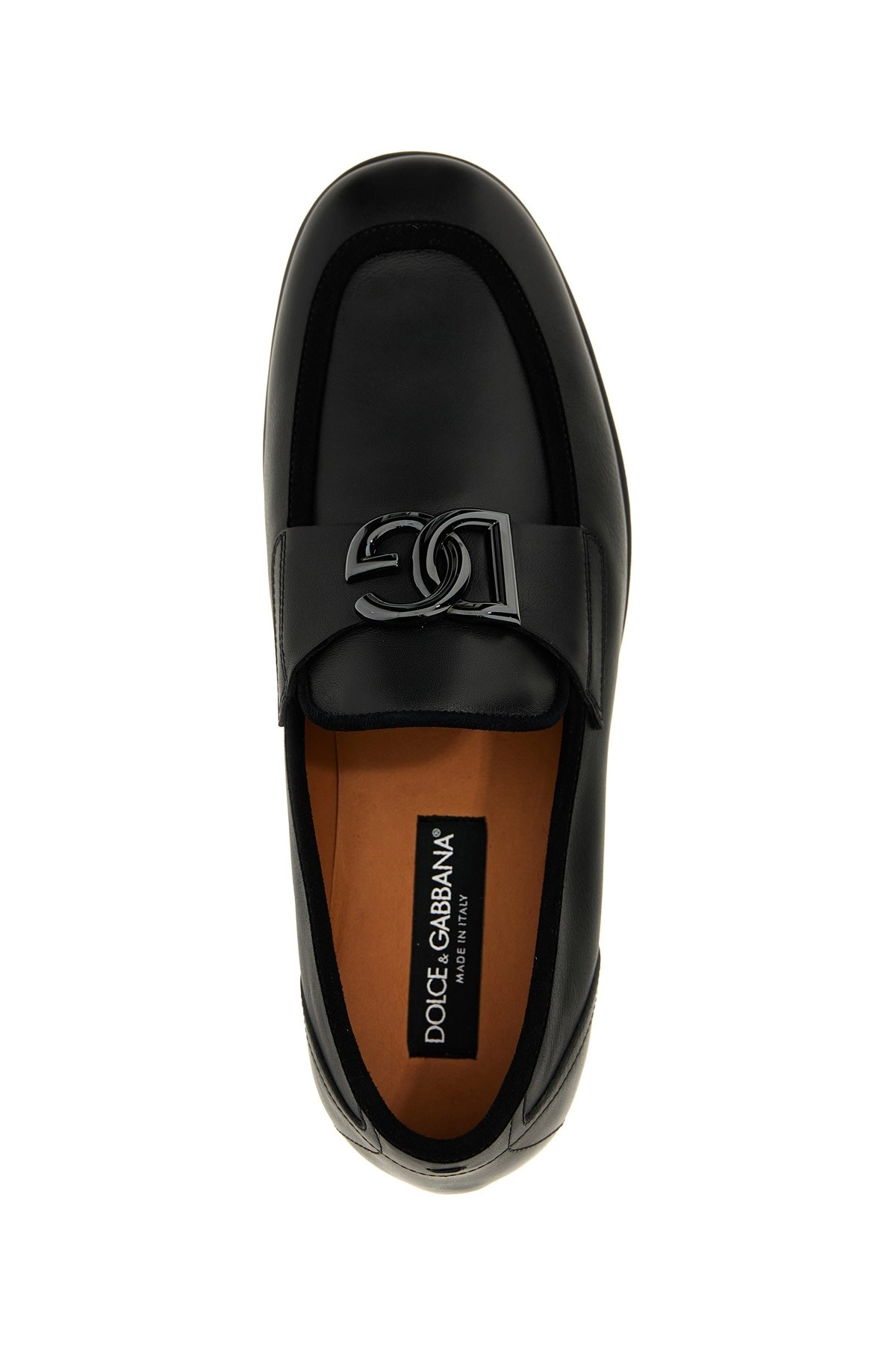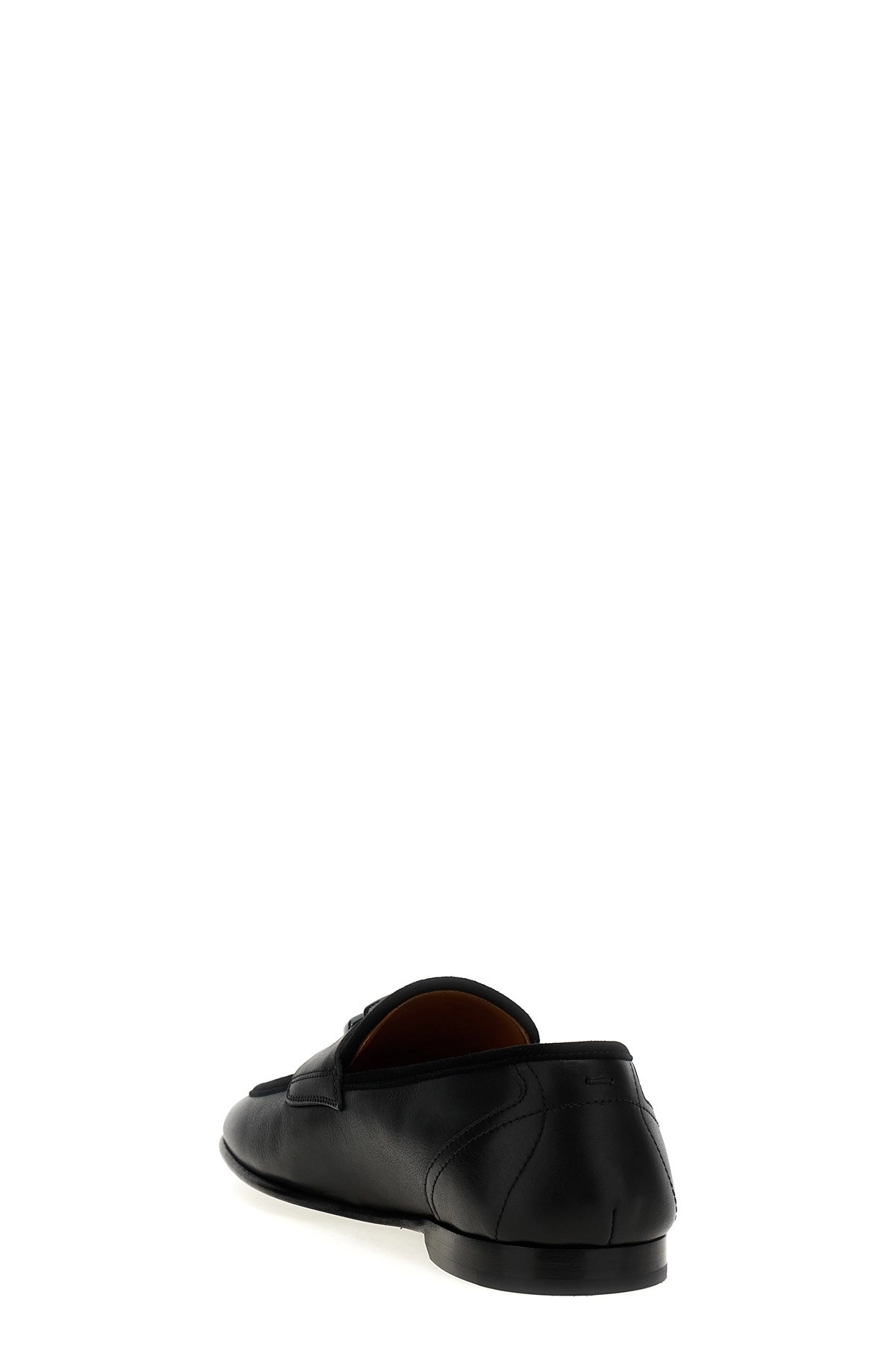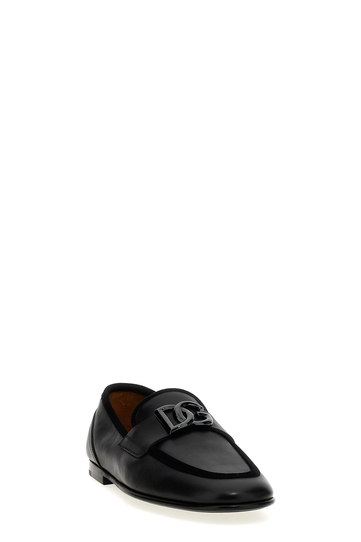 cod. A50462A6O7080999 Leather loafers with suede detail, front metal logo appliqué, and leather sole. Color: Black Size & Fit: EU MEN Composition: 100% calfskin leather (Bos Taurus) Made in: Italy