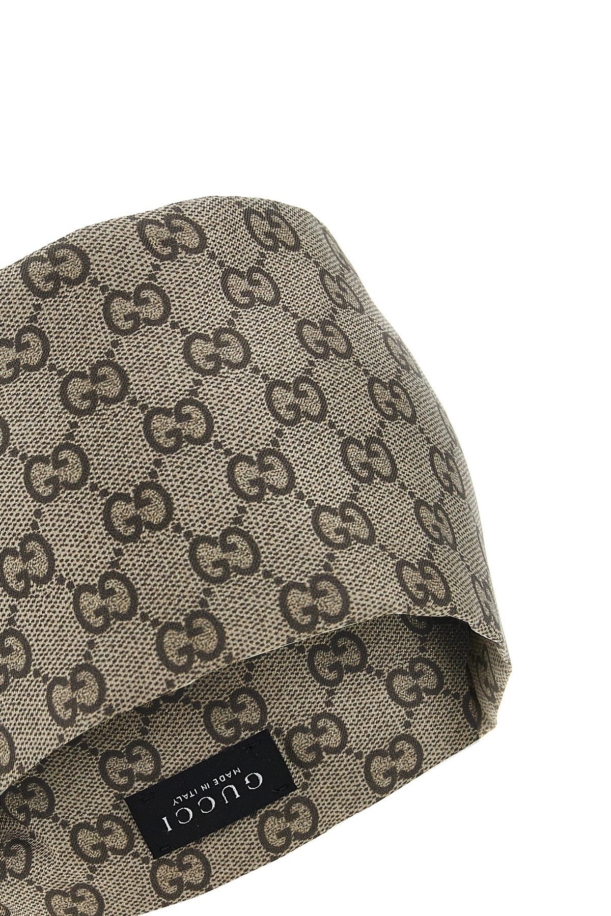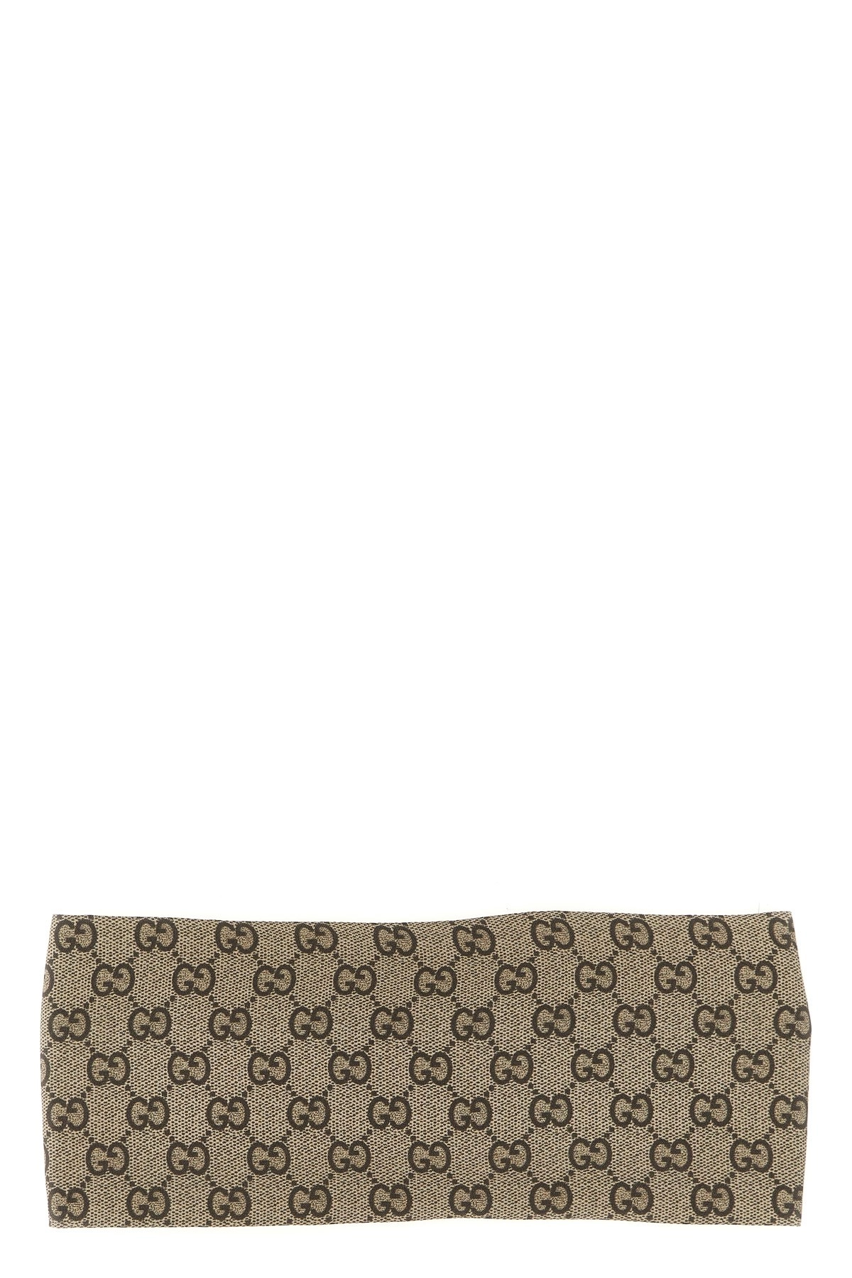 cod. 8629423GAQQ9865 Silk twill headband with all-over ‘GG’ print and elastic back. ‘La Famiglia’ collection. Color: Beige Size & Fit: H 11 cm Composition: 100% silk Made in: Italy