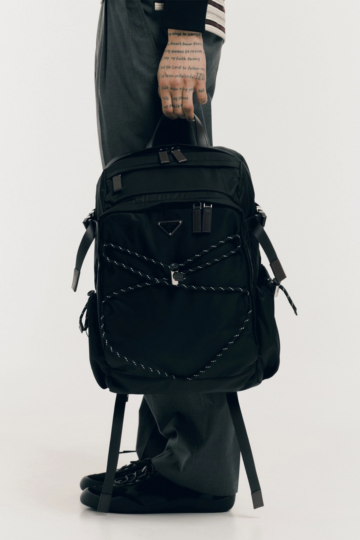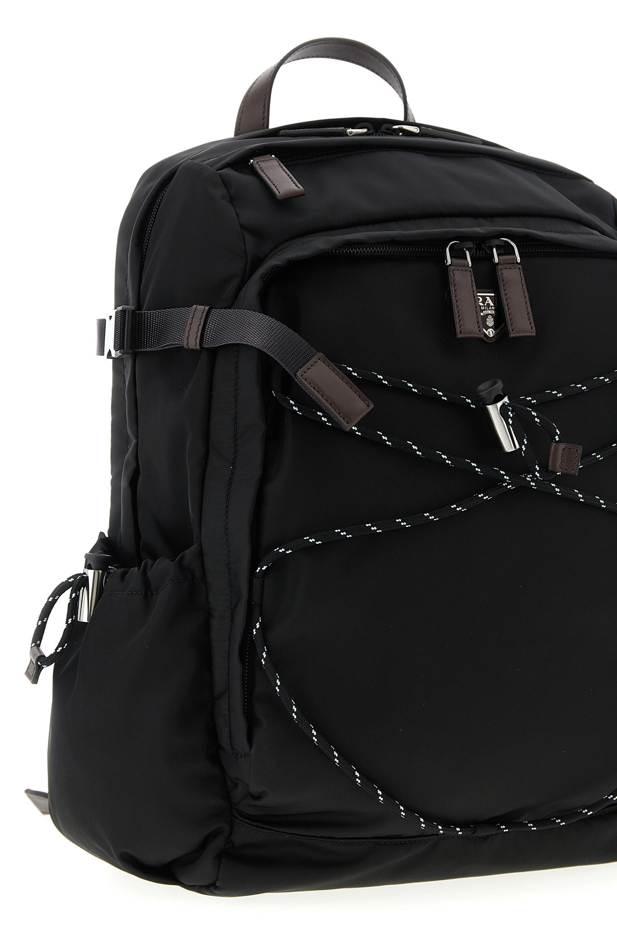 cod. 2VZ122VOOO2DMGF0002 ‘Prada Speedrock’ Re-Nylon backpack with contrasting smooth leather details, multipocket design with triangle enameled metal logo and adjustable technical cord on the front, fixed handle, top zip closure, adjustable shoulder straps, padded mesh fabric backrest. SUSTAINABLE: This product is made with Re-Nylon, a regenerated yarn made from recycled and purified plastic collected in oceans, fishery nets and textile fibers. Color: Black Size & Fit: W 29 x H 42 x D 14 cm Composition: 100% recycled polyamide Made in: Italy