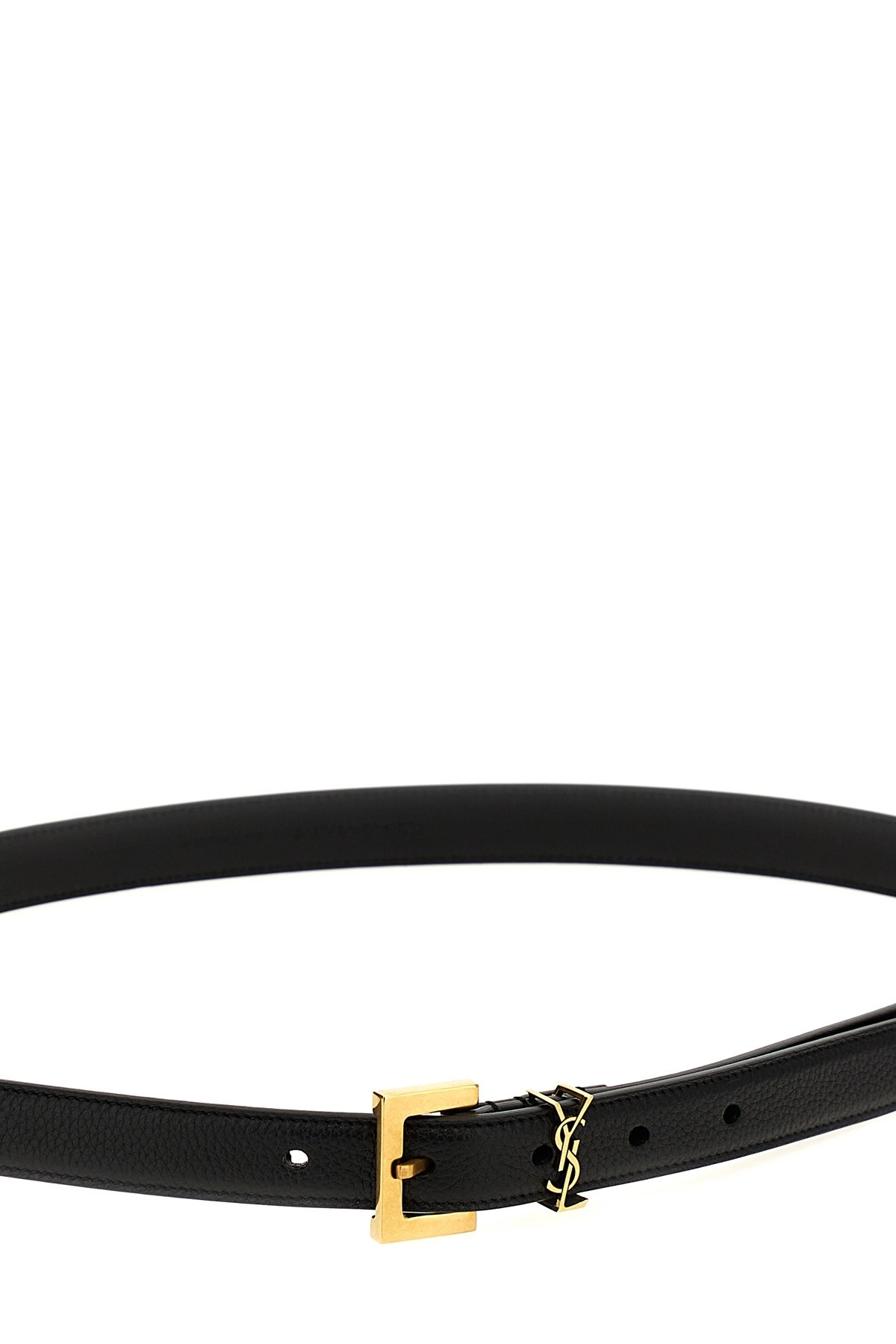 cod. 612616DTI0W1000 Garnet leather belt with metal ‘YSL’ logo buckle. Color: Black Size & Fit: H 2 cm Composition: 100% leather Made in: Italy