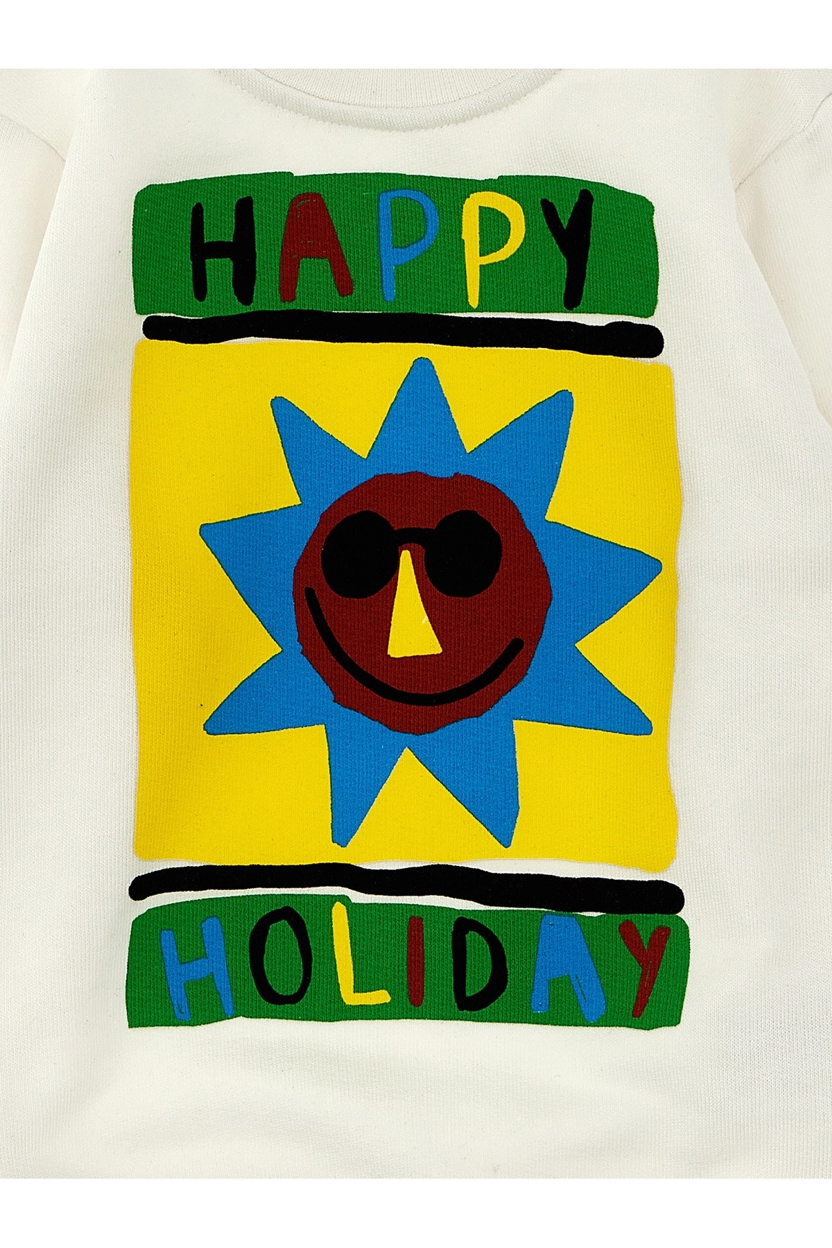 cod. TU4570Z0499100 KIDS Cotton sweatshirt with front print, crew neck, long cuffed sleeves. SUSTAINABLE: This product is made of organic cotton. Color: White Size & Fit: true to size fit Composition: 100% cotton Made in: Turkey